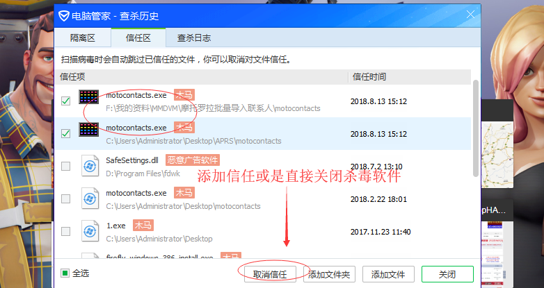 2、打开软件后杀毒软件可能会报毒,可以添加信任或是选择暂时关闭杀毒软件