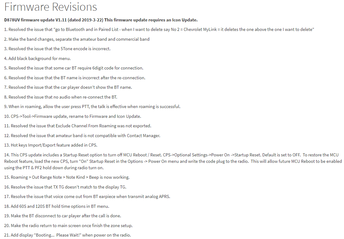 有爱好者反映此款机器在配合mmdvm多模式互通使用时,C4FM过来的信号尤其是70D的信号偶尔有不解码的现象,不过此版本中没有此类bug的更新,也许老外根本就不玩多模式的互通,也就不存在类似的问题。