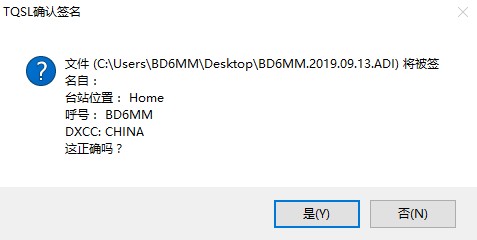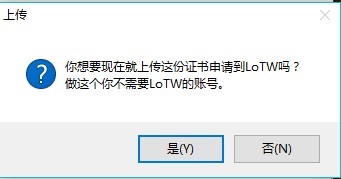 注册引导程序会提示是否上传这条Lotw注册申请,我们点“是”就可以了。*注意* 如果点了否,注册引导程序会让你把TQ5文件保存到本地一个位置,方便下次直接调用这个文件来申请。