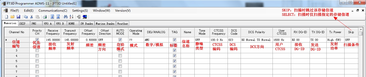 手台正确连接至电脑,从菜单栏中选择“通讯” 菜单, 然后单击“ 发送数据到FT3D”。