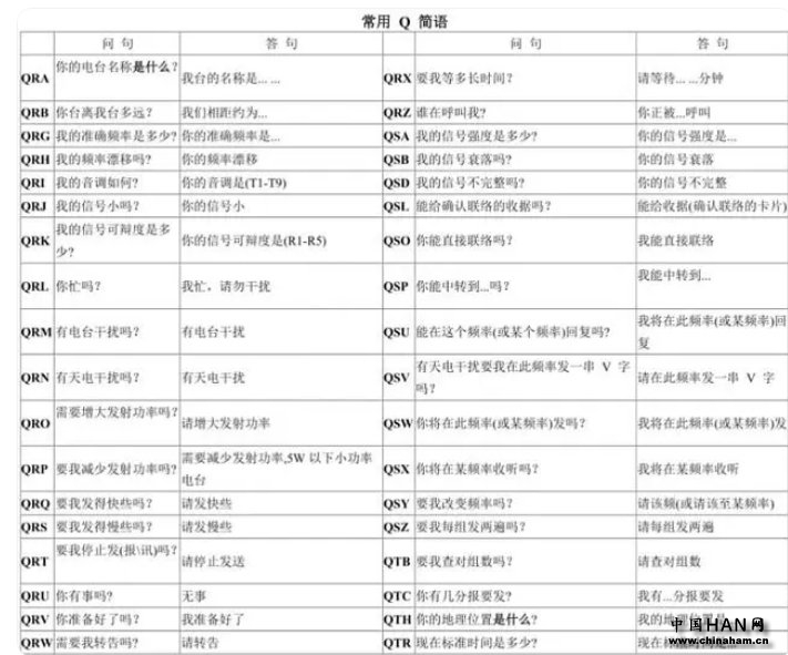 业余无线电通信常用Q缩语