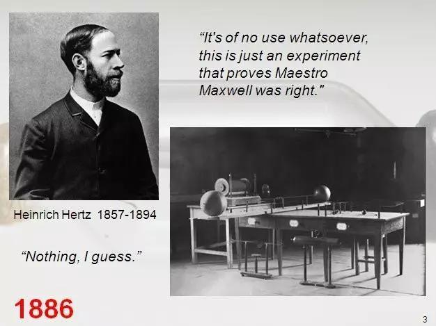 耐人寻味的是,作为电磁波的发现者,赫兹表示他所发现的无线电磁波除了验证麦克斯韦的方程是正确的以外,并没有什么其他用处。