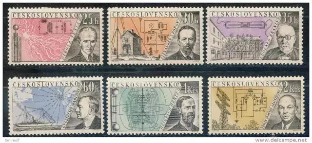 为纪念无线电发明的主题的邮票,左上为特斯拉,中上为波波夫,左下为马可尼