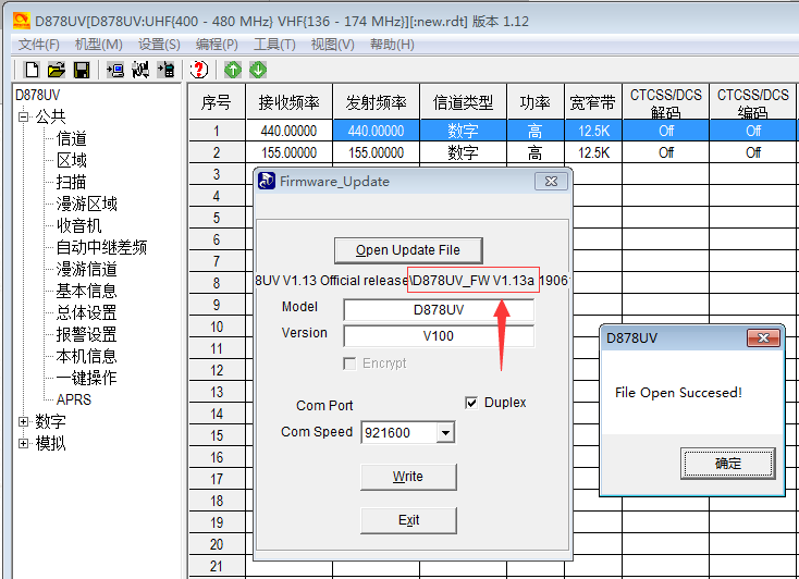 D878UV固件更新V1.13更新内容